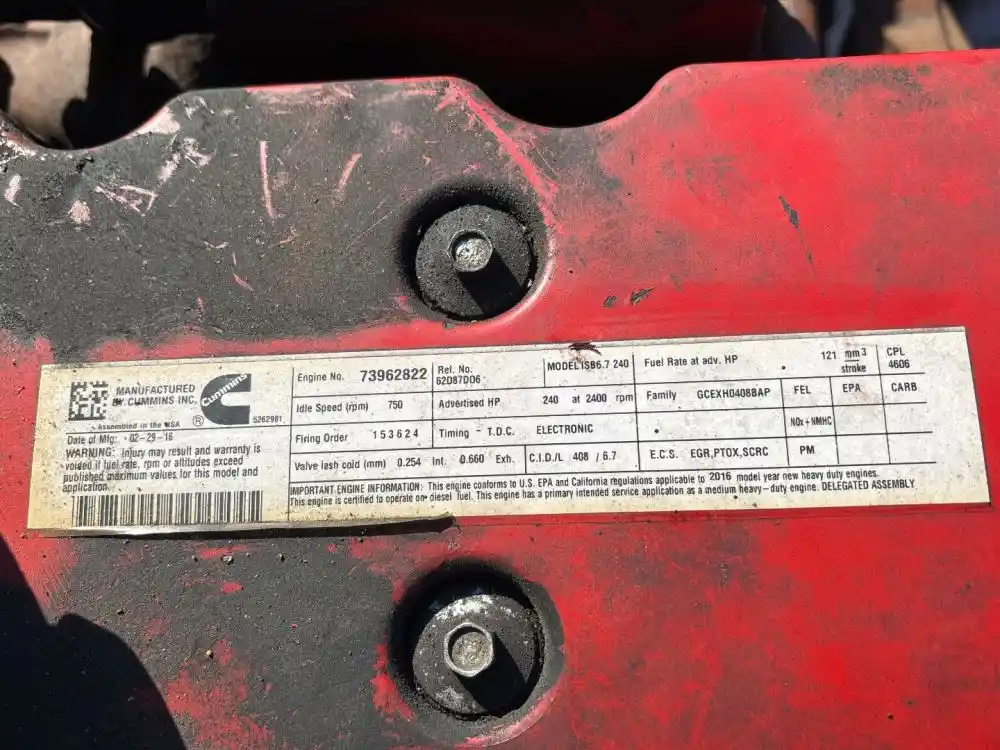 (Core) Engine does Turn 360 Degrees Complete, 2017 CUMMINS B6.7, ENGINE ASSEMBLY Engine Family: GCEXH0408BAP, Serial numbers: 73962822, Part number: 62D87DD6, Displacement: 6.7L Horsepower: 240, CPL: 4569, E.C.S.: EGR, PTOX, SCRC, Reference images for condition ,