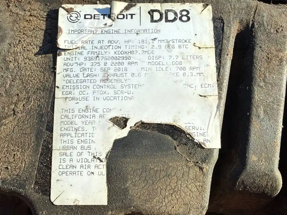 (Core) Engine does Turn 360 Degrees Complete, 2018 Detroit DD8, ENGINE ASSEMBLY- Family Number: KDDXH07.7MDE, Displacement: 7.7L, Horsepower: 375, Serial Number: 936917S0002990, ECS: DDI, TC, CAC, ECM, EGR, OC, PTOX, SCR-U, AMOX, Reference images for condition