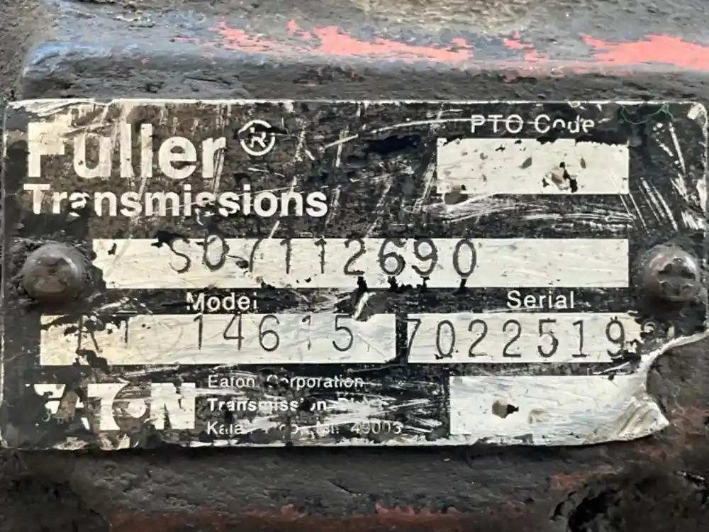 (Used) 1984 Eaton/Fuller (MT), TRANSMISSION ASSEMBLY- Model: RT14615, Serial Number: 70225192, Part Number: S07112690, Engine: Caterpillar 3406, Reference images for condition. ,