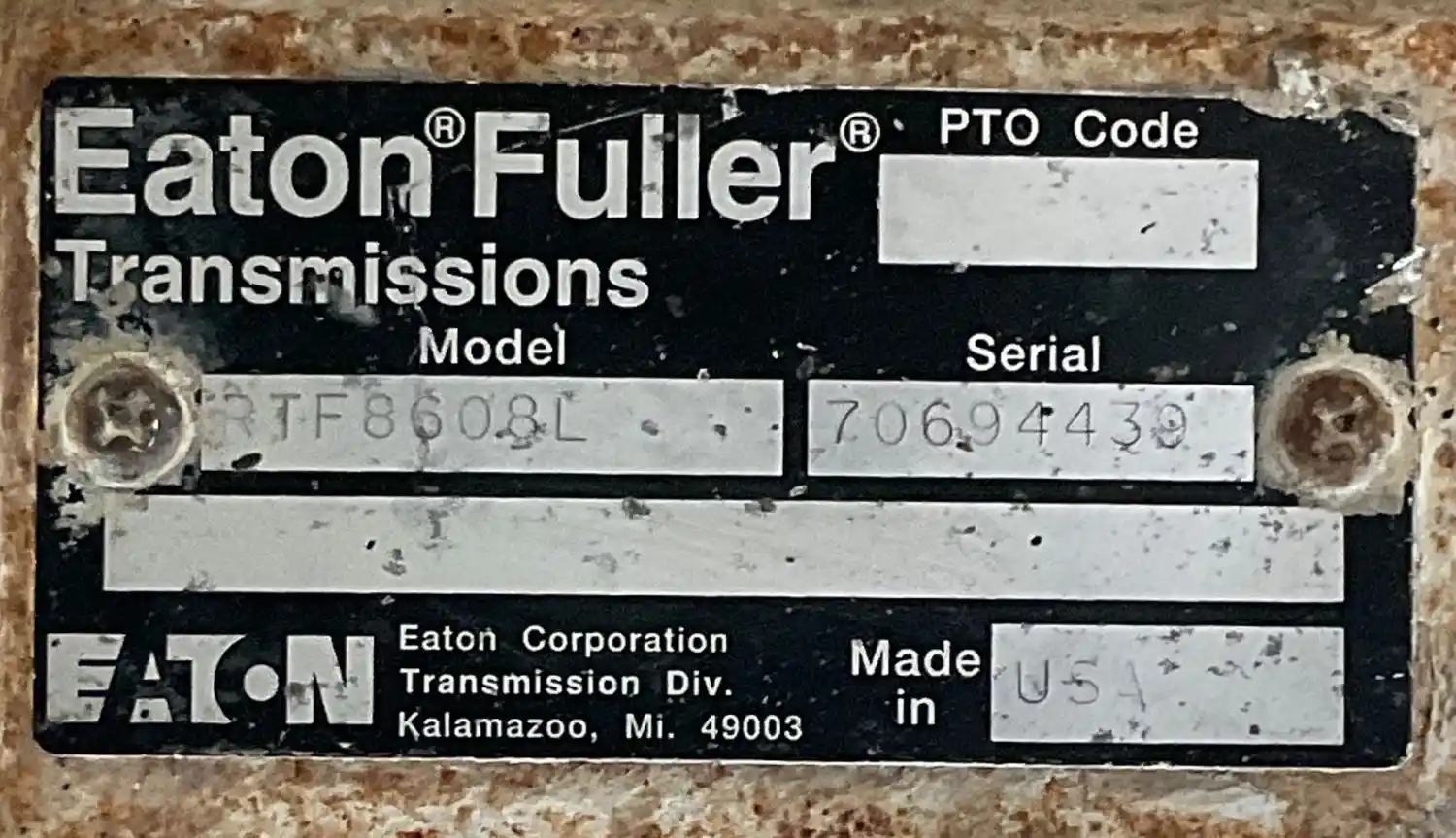 (Used) 1995 Eaton/Fuller (MT), TRANSMISSION ASSEMBLY- Model: RTF8608L, Serial Number: 70694439 Engine: Cummins C8.3, ELKTON MD, 21921
