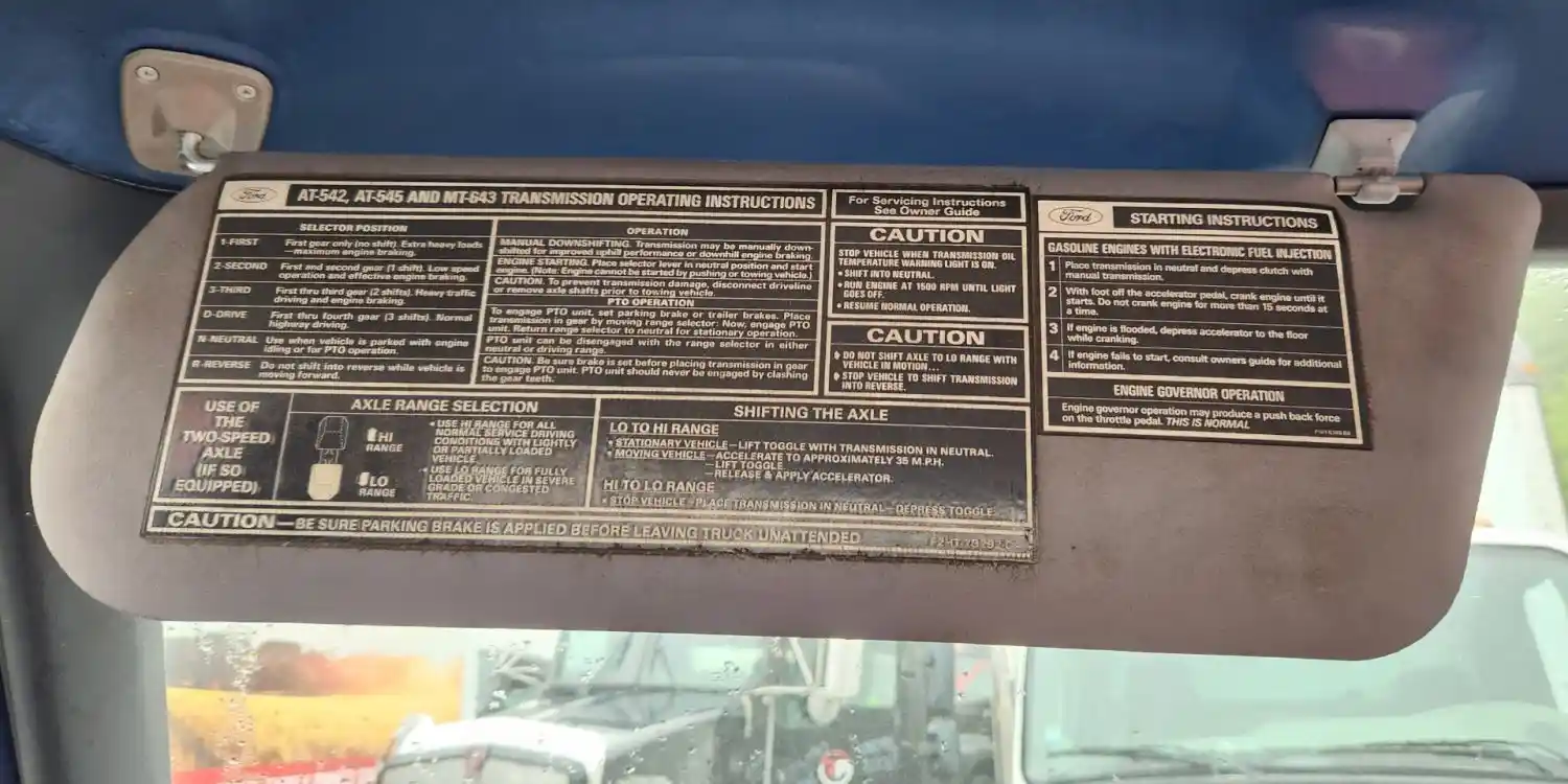 (Used) 1996 Ford F700, SUN VISOR- Side: Driver Left Side, Color: Grey, Material: Vinyl, Type: Adjustable,