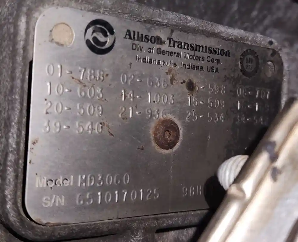 (Used) 1998 Allison (AT), TRANSMISSION ASSEMBLY- Model: MD3060, Serial Number: 6510170125, Engine: International A330F,