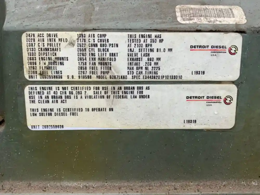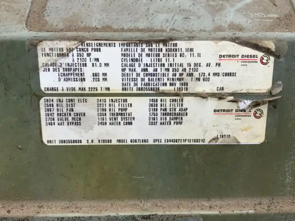 (Used) 1999 DETROIT DIESEL SERIES 60 ENGINE ASSEMBLY, Family Number: XDDXH11.1EHL, Horsepower: 350, Displacement: 11.1L, Serial Number: 06R055836,