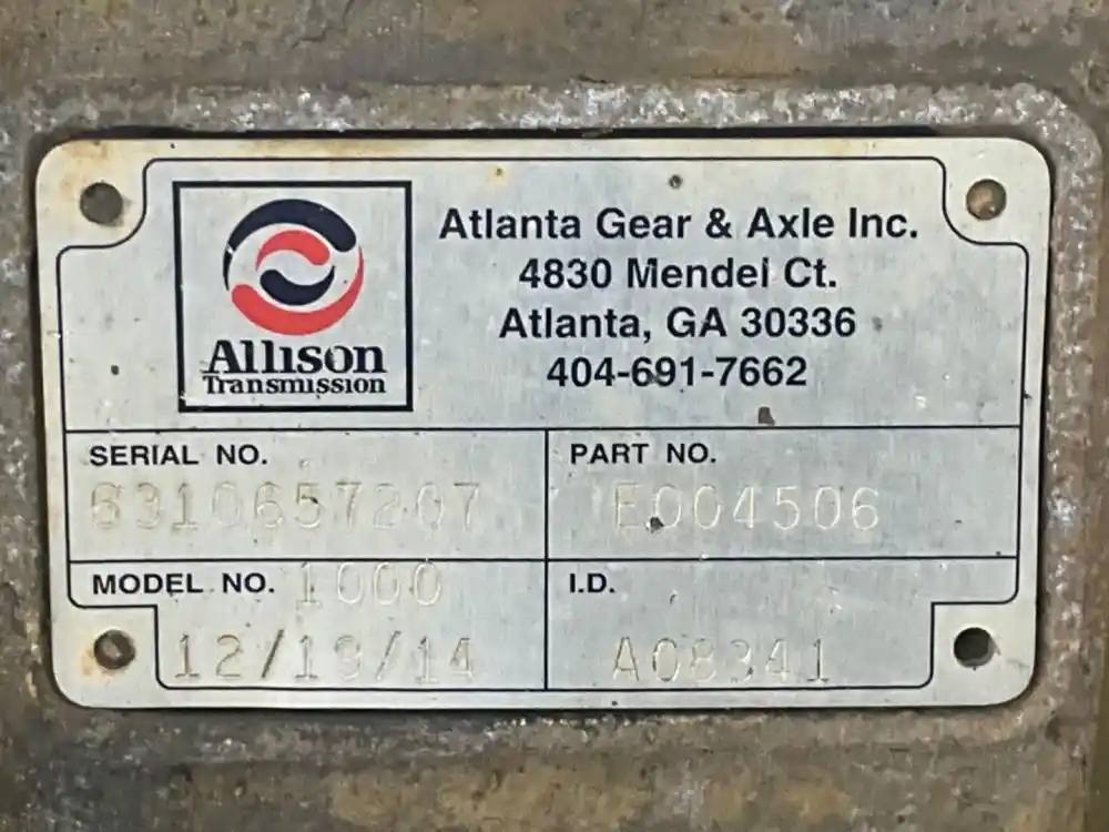 (Used) 2000 Allison (AT), TRANSMISSION ASSEMBLY- Model: 1000HS Serial Number: 6310657207 Part Number: E004506 Engine: CUMMINS ISB ,