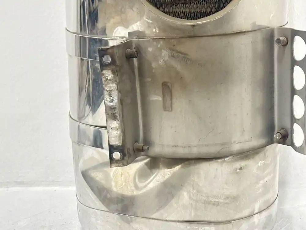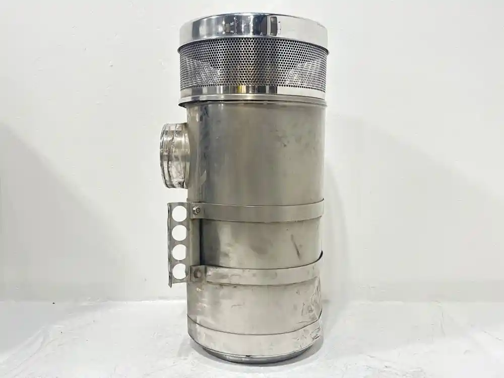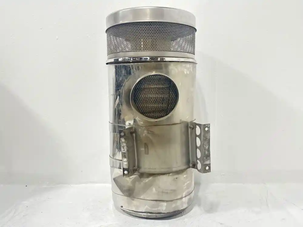 (Used) 2000 Peterbilt 379 AIR CLEANER- (Air Cleaner) Part Number: N/A, Serial Number: N/A, Side: Driver Left Side, Color: Silver, Material: Chrome, Engine: Cummins ISX, Dimensions: L=27", D=11", Minor Damage!! Reference images for condition. ,