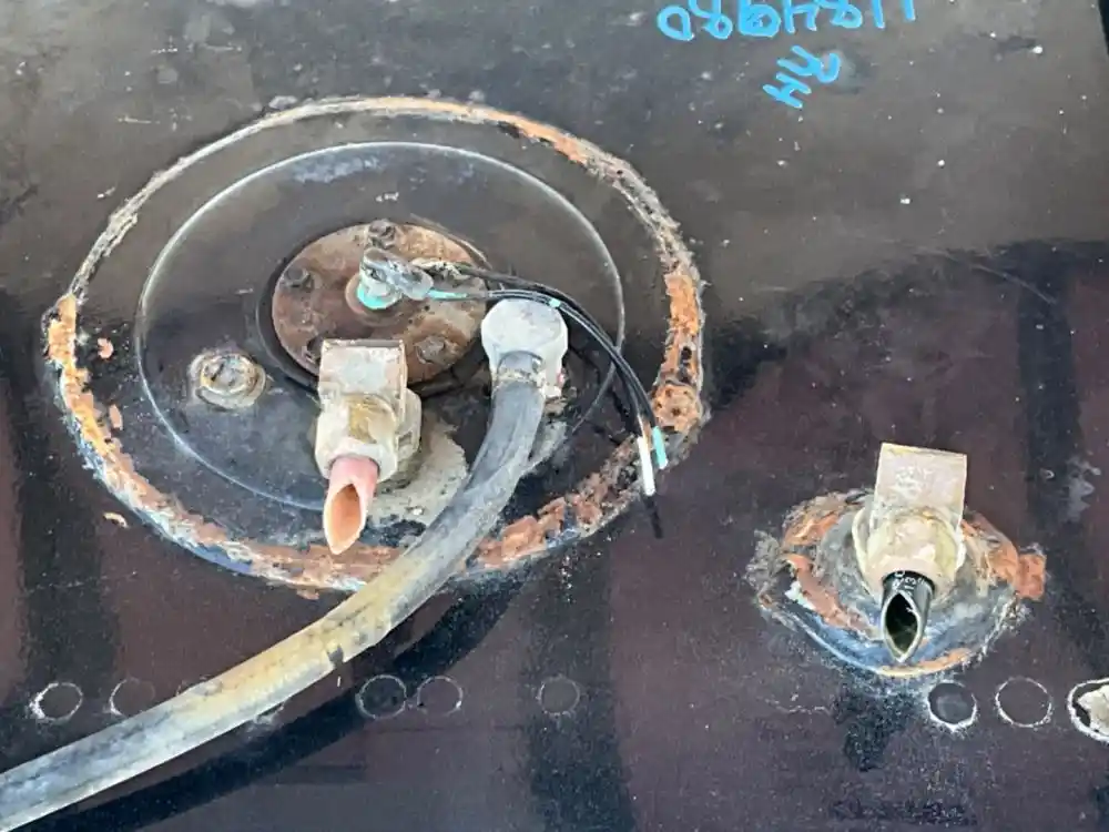 (Used) 2001 International 4900, FUEL TANK- Part Number: 3519658-C91, Side: Passenger Right Side, Capacity: 50 Gallons, Material: Steel, Shape: Rectangular, Dimensions: L=30", H=18", W=25", Reference images for condition. ,