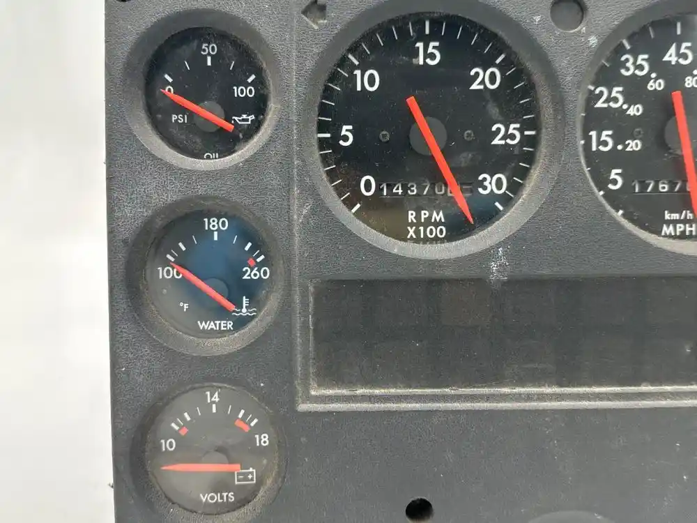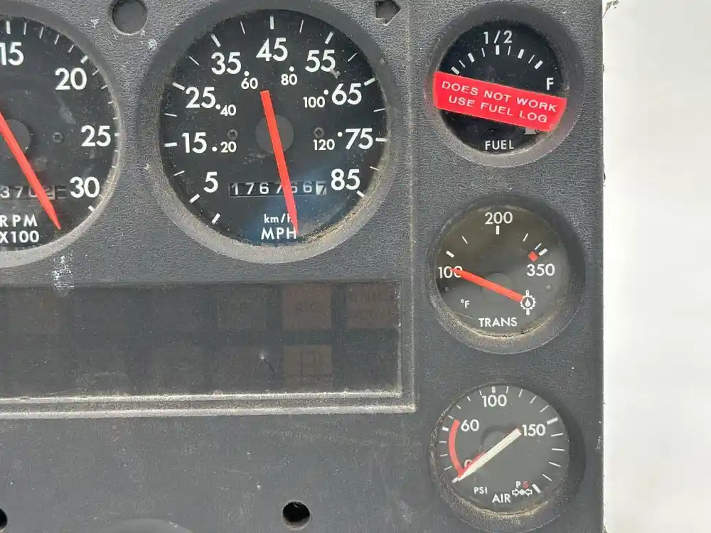 (Used) 2003 American La France, INSTRUMENT CLUSTER- Gauges: Engine Oil Pressure, Water Temp, Battery Volts, RPM, MPH, Fuel Level, Transmission Fluid Temp, Brake Air Pressure (P) (S), Material: Plastic, Reference images for condition. we ship Worldwide! ,