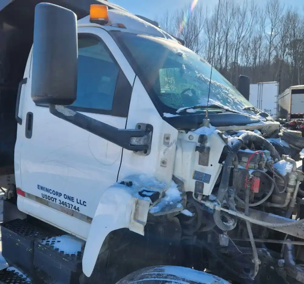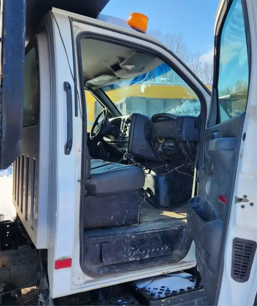 (Used) 2003 Chevrolet C7500, CAB- Type: Day Cab, Engine: Caterpillar 3126, Color: White, Less Interior, Less Doors Sold Separately, Reference images for condition,