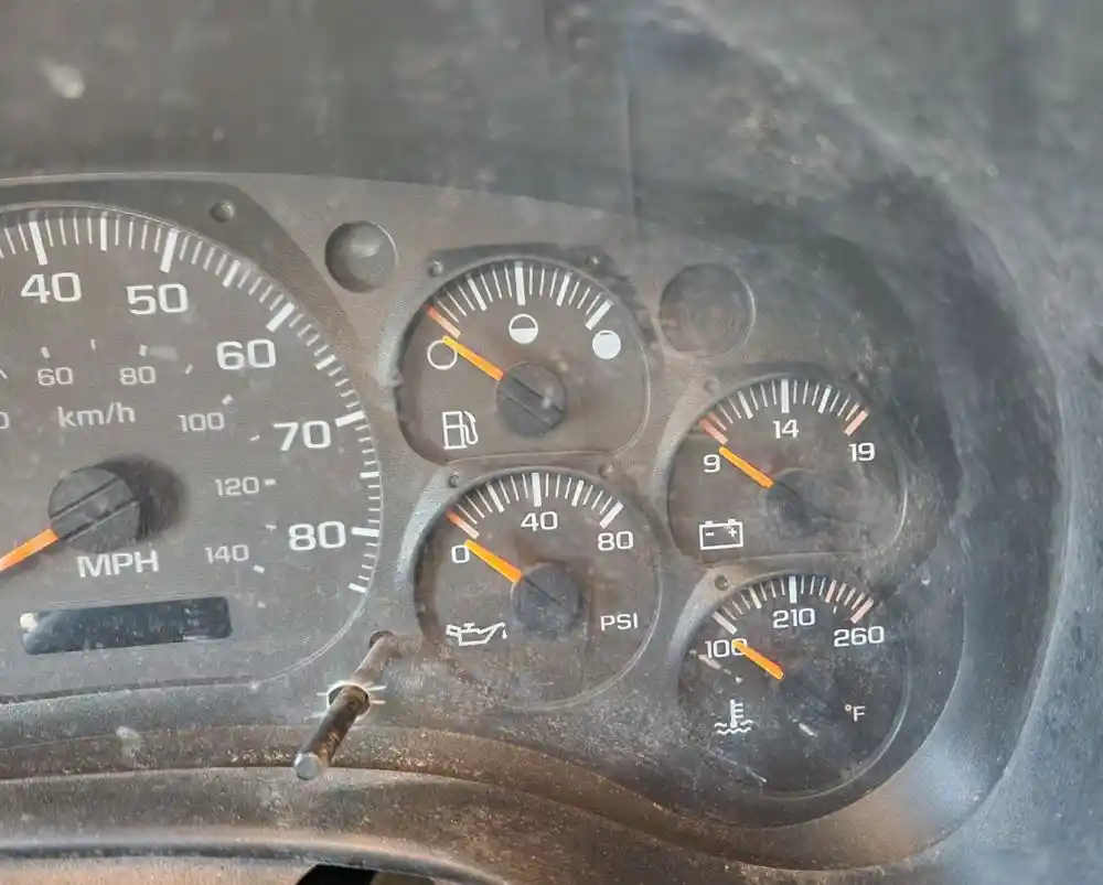 (Used) 2003 Chevrolet C7500, INSTRUMENT CLUSTER- Gauges: RPM, MPH, Fuel Level, Engine Oil Pressure, Battery Volts, Water Temperature, Material: Plastic,