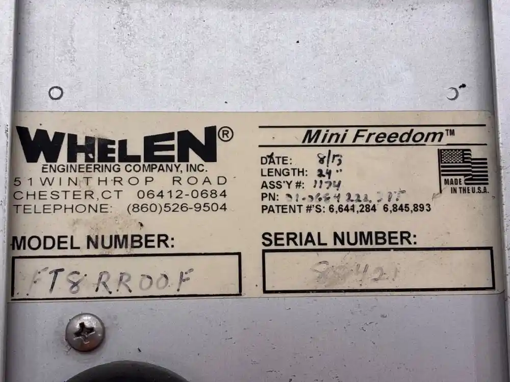 (Used) 2003 Spartan Gladiator, Refuse LIGHTS- WHEELEN ENGINEERING INC. Part Number: FT8RROOF, Serial Number: 88421, Side: Right Side (EMERG LIGHT),
