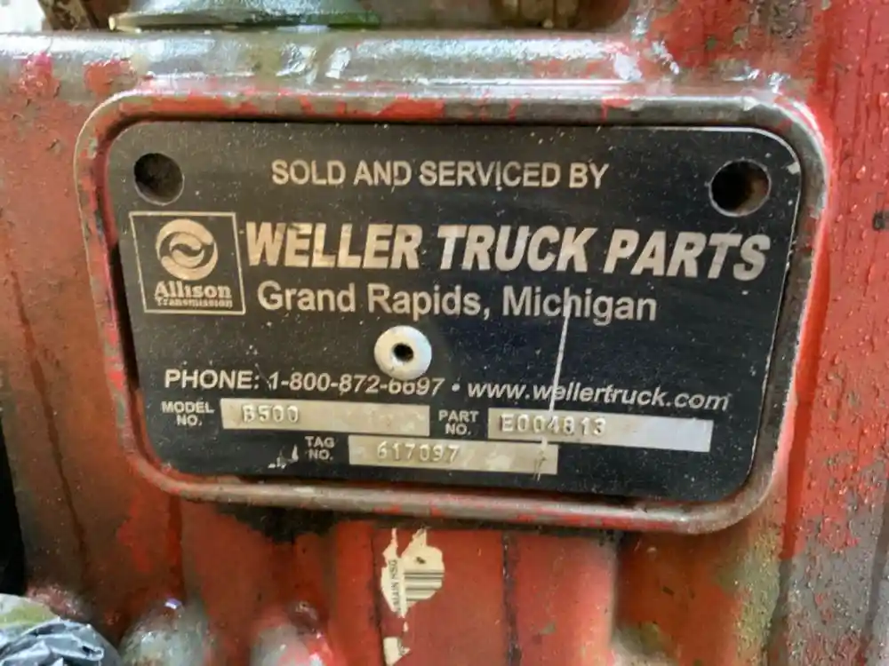 (Used) 2004 Allison (AT), WELLER REMAN, TRANSMISSION ASSEMBLY- Model: B500 Serial Number: 617097 Part Number: E004813 For more information about this item give us a call. ( GRG HEAVY TRUCK PARTS ) 299 W PULASKI HWY, ELKTON MD 21921