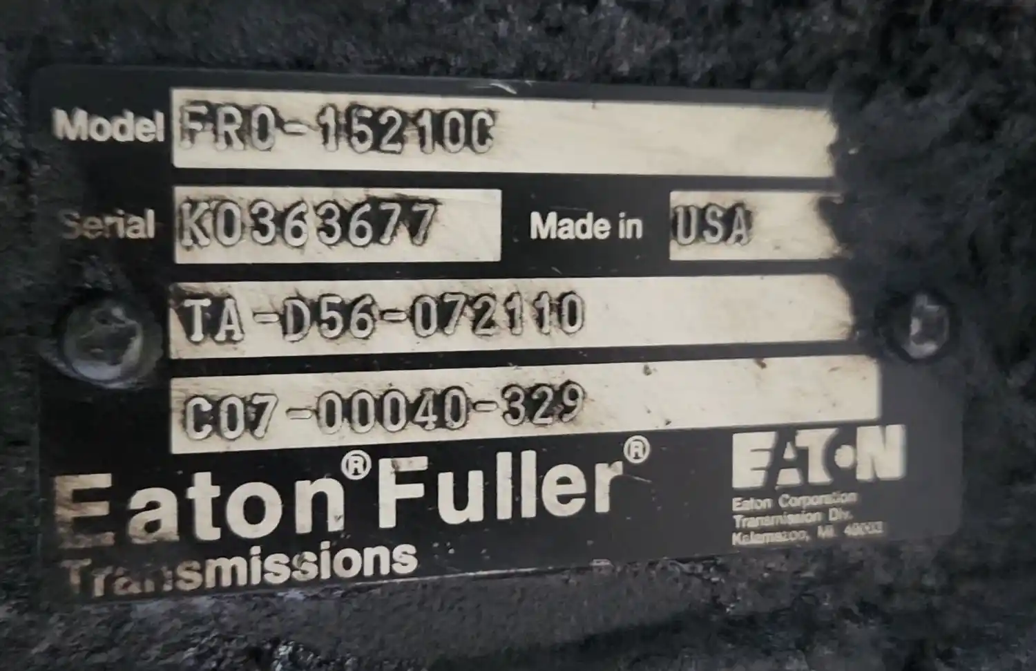 (Used) 2004 Eaton/Fuller (MT), TRANSMISSION ASSEMBLY- Model: FRO-15210C, Serial Number: K0363677, Part Number: C07-00040-329, Engine: Detroit Series 60,