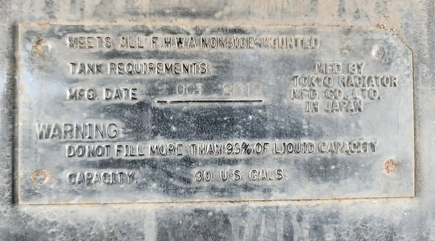 (Used) 2004 GMC W4500, FUEL TANK- Side: Rear Center Of Truck, Capacity: 30 Gallons, Material: Steel, Shape: Rectangular, Dimensions: L=25", H=17 ½', W=20 ½", Reference images for condition,
