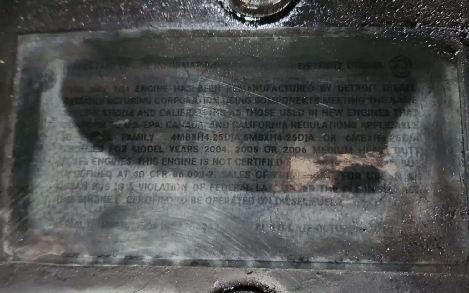 (Used) 2004 Mercedes MBE 904, ENGINE ASSEMBLY- REMANUFACTURED- Family Number: 6MBXH4.25DJA, Displacement: 4.3L, Horsepower: 175, Serial Number: 900910R4206337,