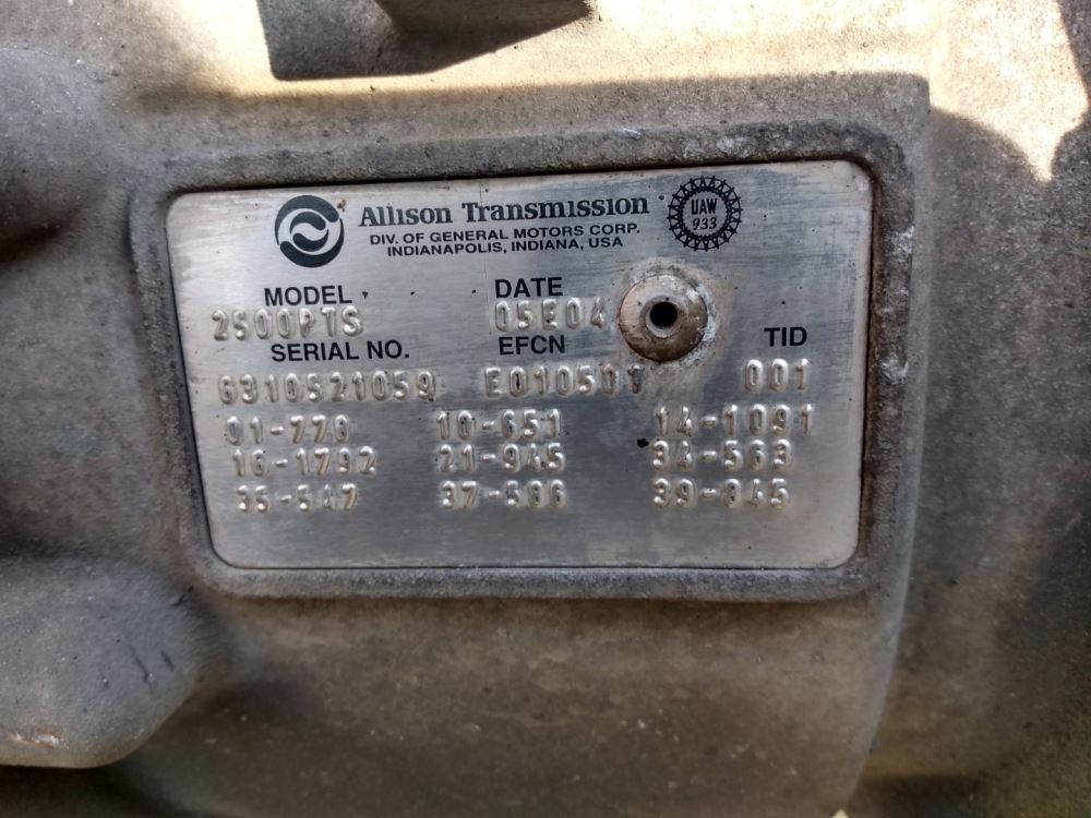 (Used) 2005 Allison, TRANSMISSION ASSEMBLY- Model: 2500PTS, Serial Number: 6310521059, Part Number: E010501, Engine: Cummins VT365,