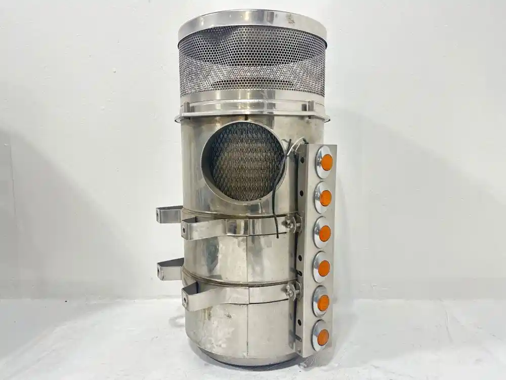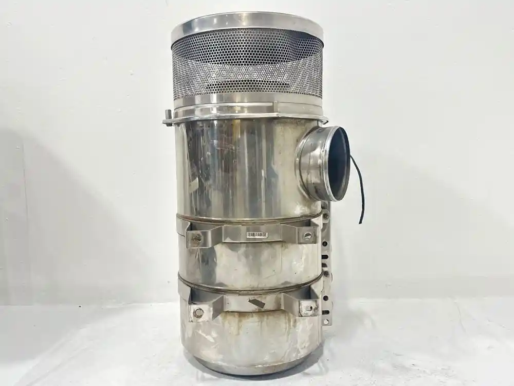 (Used) 2005 Kenworth W900 AIR CLEANER- Part Number: N/A, Serial Number: N/A, Side: Driver Left Side, Color: Silver, Material: Chrome, Engine: Caterpillar C15, Dimensions: L=27", D=11", Reference images for condition. ,