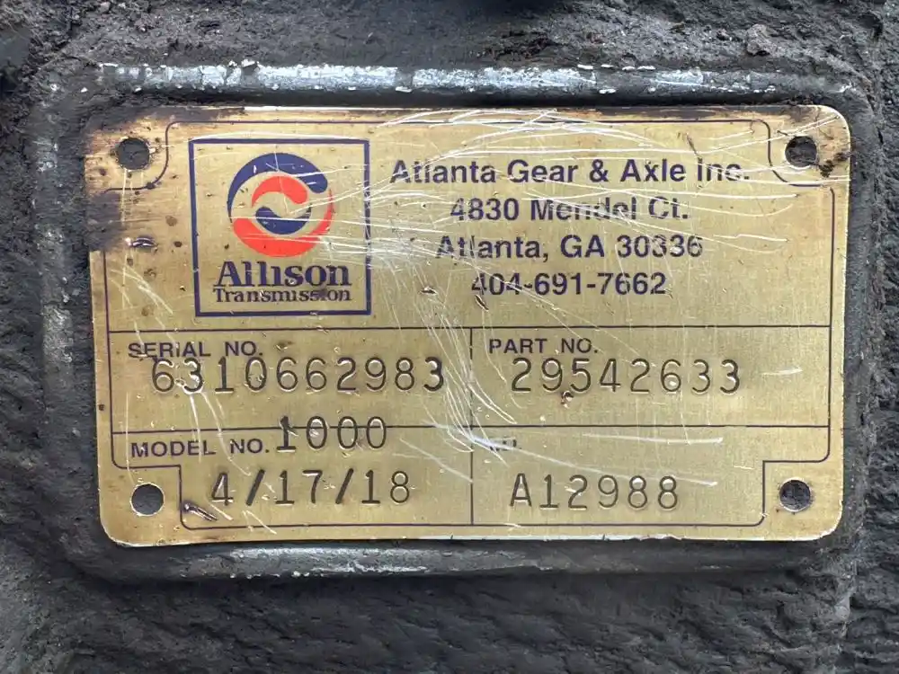 (Used) 2006 Allison (AT), TRANSMISSION ASSEMBLY- REMANUFACTURED ATLANTA- Model: 1000 SERIES, Serial Number: 6310662983, Part Number: 29542633, Engine: Cummins ISB, Reference images for condition, ,
