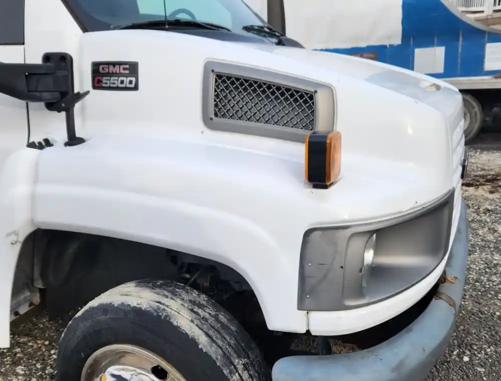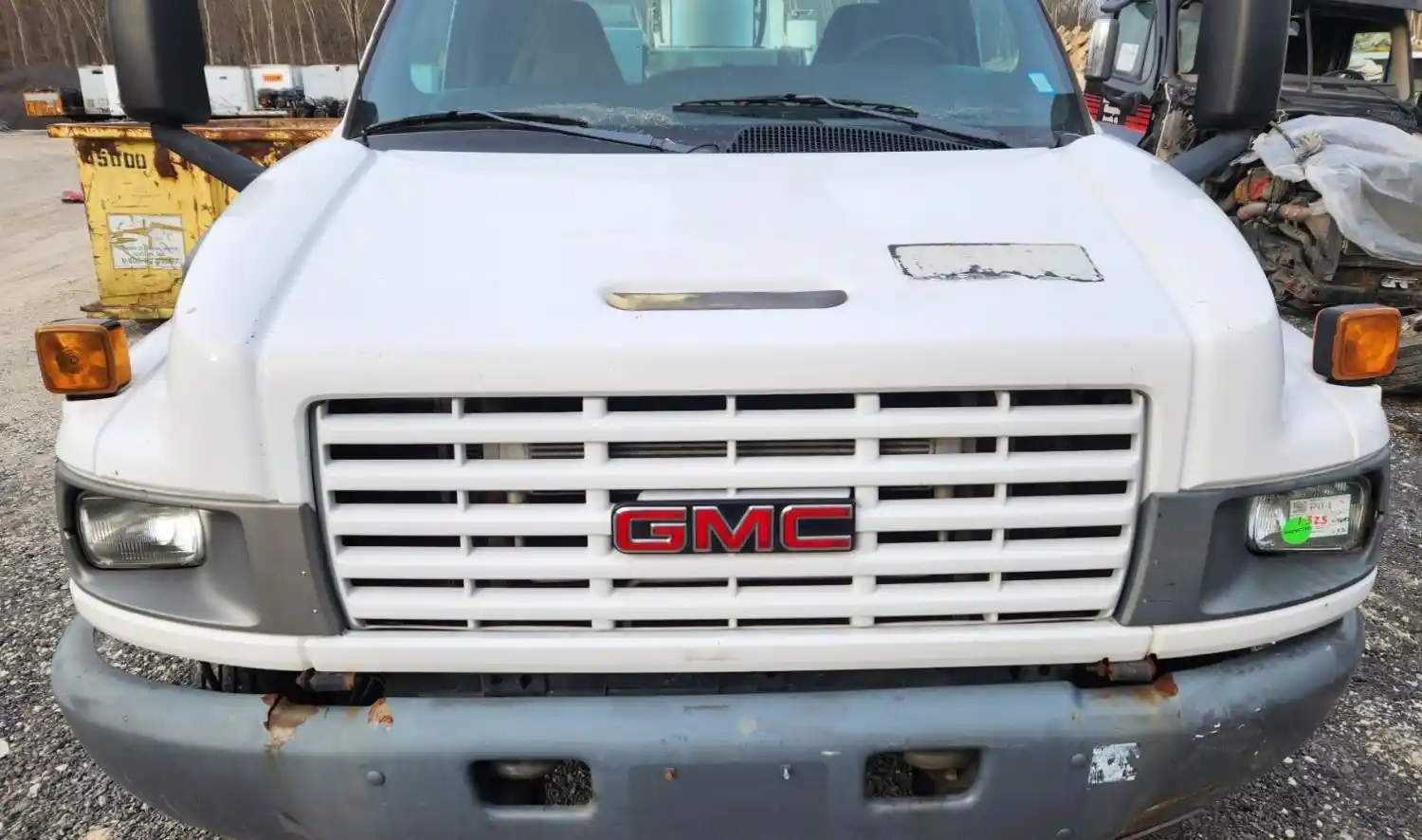 (Used) 2006 GMC C5500, HOOD ASSEMBLY- Length: 31" From Cowl to grille, Color: White, Material: Fiberglass, Reference images for condition,