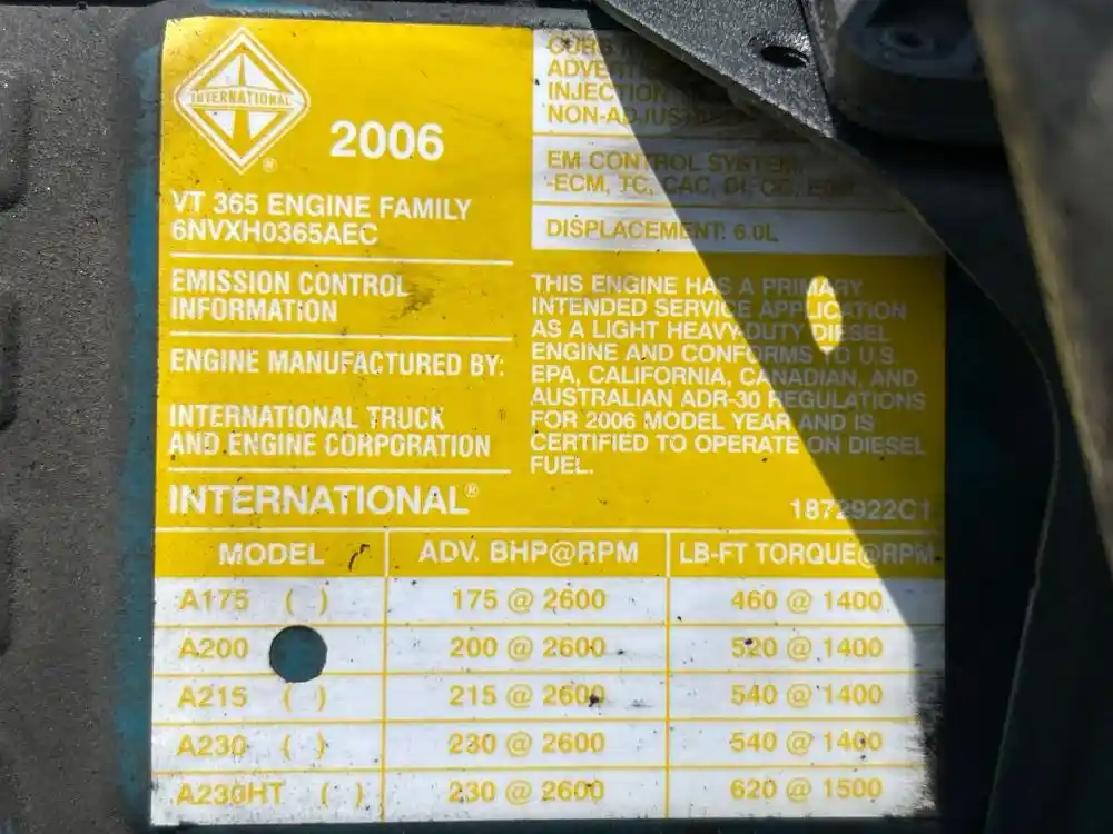 (Used) 2006 International VT365, ENGINE ASSEMBLY- Family Number: 6NVXH0365AEC, Displacement: 6.0L, Horsepower: 200, Serial Number: 1872922C1, E.C.S.: ECM, TC, CAC, DI, OC, EGR, Reference images for condition ,