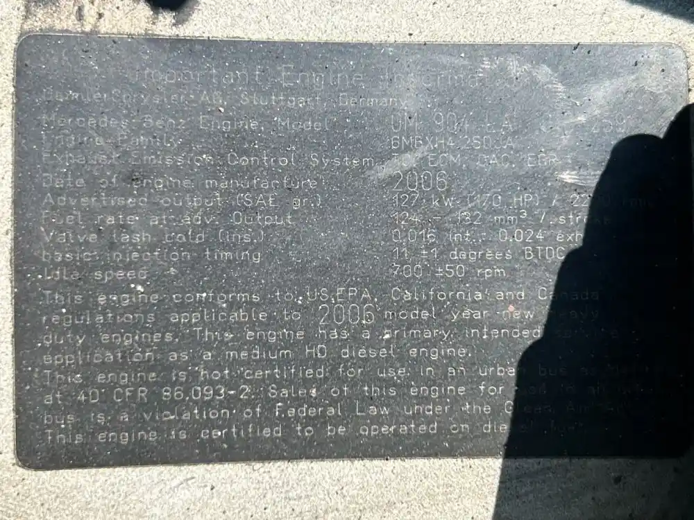 (Used) 2006 Mercedes MBE 904, ENGINE ASSEMBLY- Family Number: 6MBXH4.25DJA, Displacement: 4.3L, Horsepower: 175, Serial Number: TBD, E.C.S: TC, ECM, CAC, EGR, Reference images for condition
