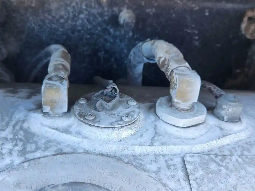 (Used) 2006 Peterbilt 357, FUEL TANK- Part Number: 11-02834-080, Side: Passenger Right Side, Capacity: 80 Gallons, Material: Aluminum, Shape: Cylinder, Dimensions: L=34.5", D=26", Reference images for condition,