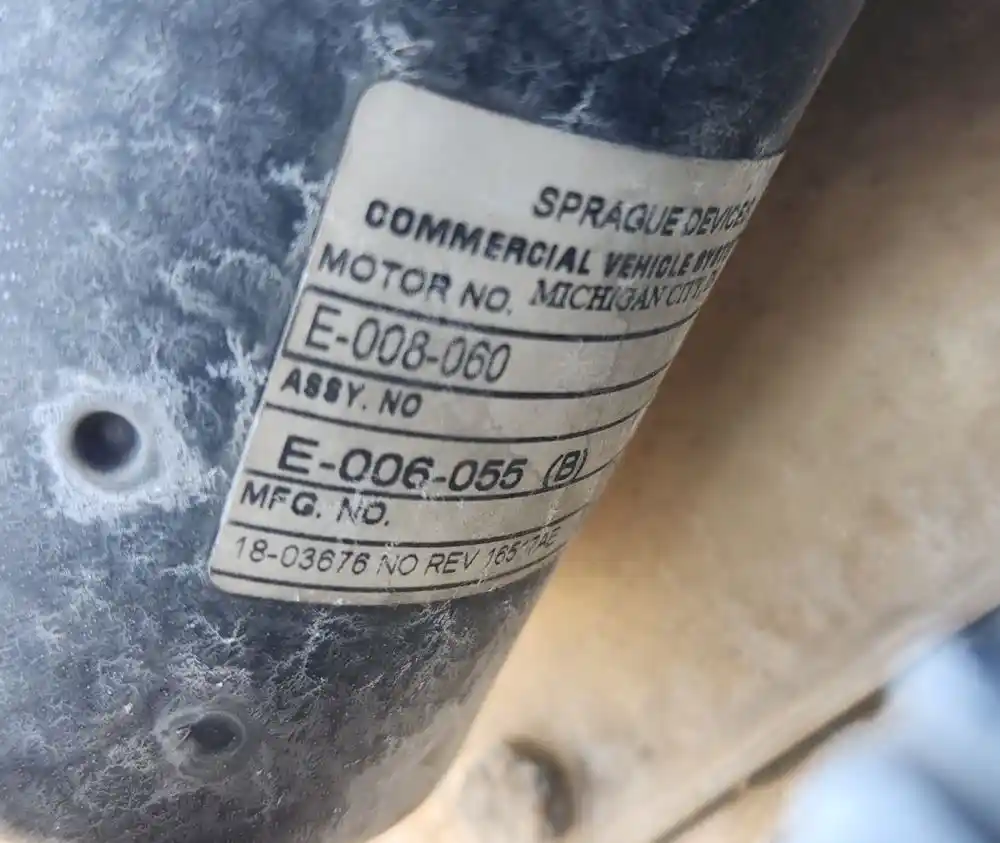(Used) 2006 Peterbilt 357, WIPER MOTOR- Part Number: E-008-060, Location: Front The Cab, Brand: Sprague, Material: Steel With Plastic, Reference images for condition, ,
