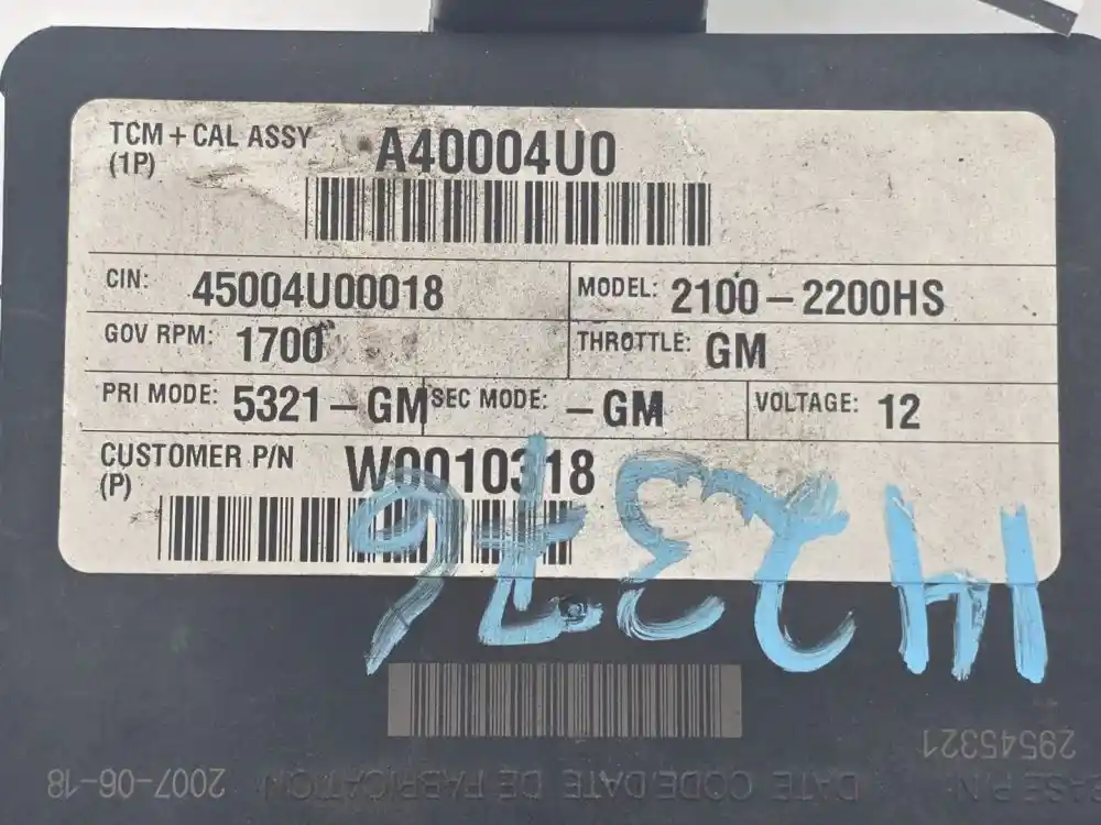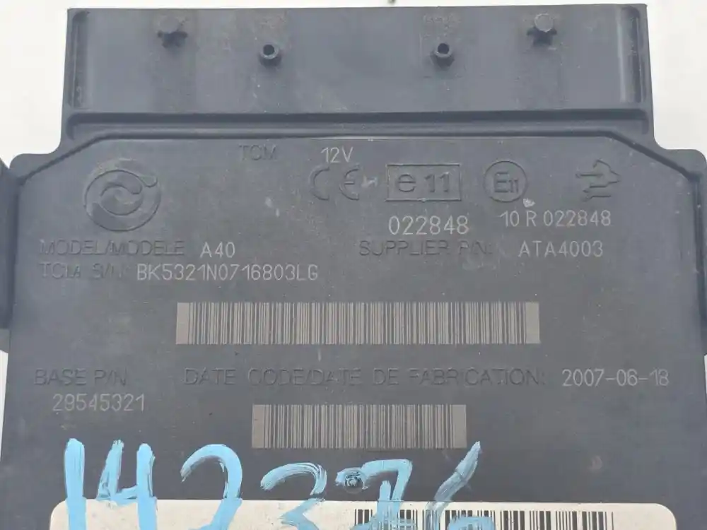 (Used) 2007 Allison 2200HS, TRANSMISSION ECM- Part Number: 29545321, Serial Number: BK5321N0716803LG, TCM Model: A40, 12V, E11, 022848, 10 R 022848, Supplier Part Number: ATA4003, Base Part Number: 29545321 1 Rectangular Plug with 80 Pins, Reference images for condition,