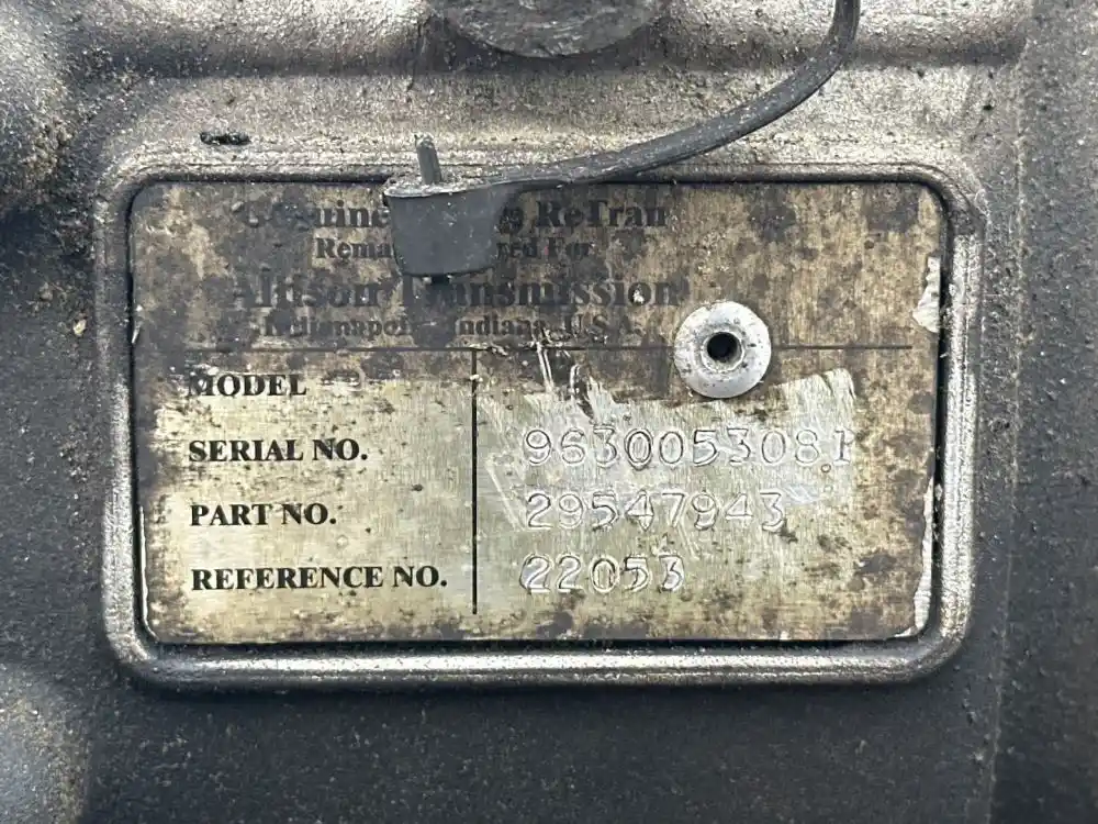(Used) 2007 Allison (AT), TRANSMISSION ASSEMBLY- Model: 1000RETRAN, Serial Number: 9630053081, Part Number: 29547943, Engine: Cummins ISB, Reference images for condition. , ELKTON MD 21921