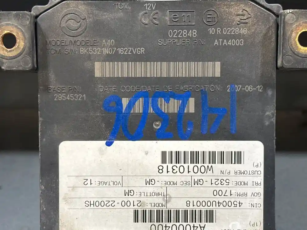 (Used) 2007 Allison (AT), TRANSMISSION ECM- ECM Model: A40, Part Number: 29545321, Serial Number: BK5321N07162ZVGR, Transmission information- REMANUFACTURED- Model: 1000REMAN, Serial Number: 671819A, 1 Rectangular Plug with 80 Pins, Reference images for condition. ,