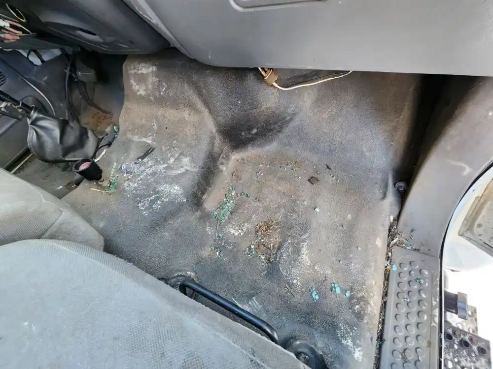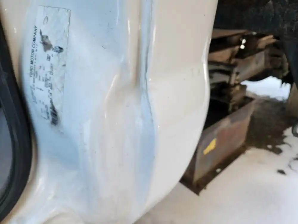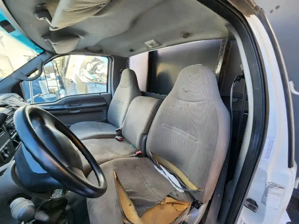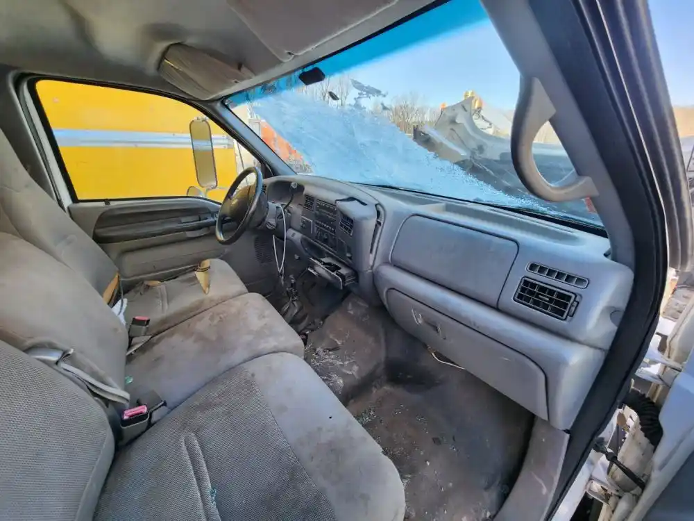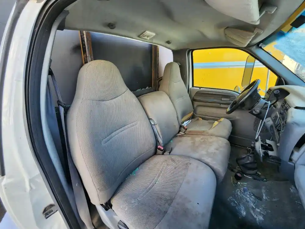 (Used) 2007 Ford F-650, CAB- Type: Day Cab, Engine: International A200, Color: White, Less Interior, Less Doors Sold Separately, Reference images for condition, It doesn't have a back window,
