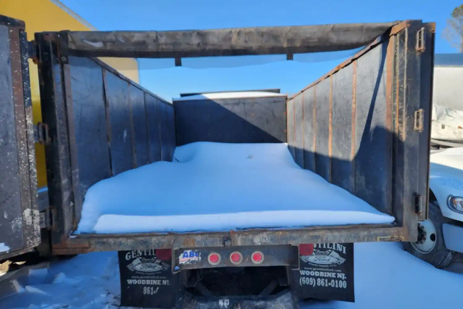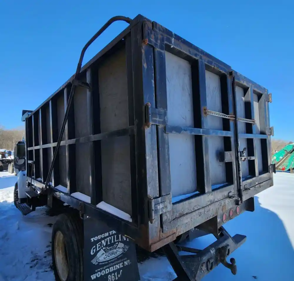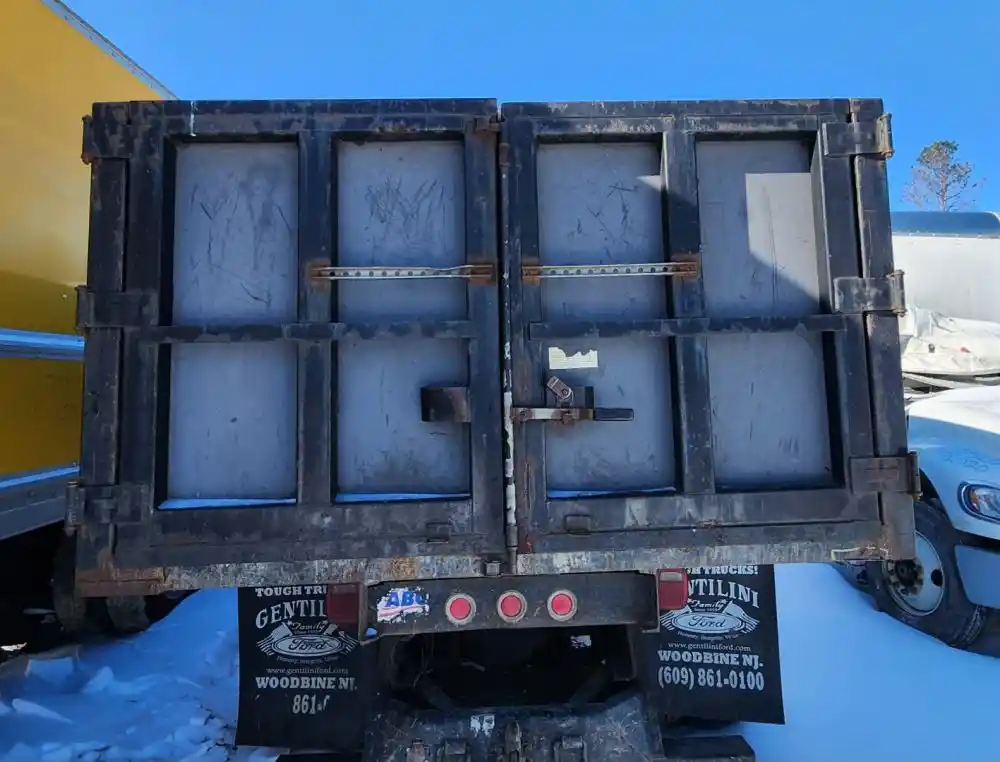 (Used) 2007 Ford F-650, DUMP BODY- Make: Dump Body, Color: Black, Material: Steel, Dimensions: Length=14FT, Width=8FT, Front Dimensions: Height=5.9FT, Rear Dimensions: Height=4.8FT, Damage Reference images for condition,
