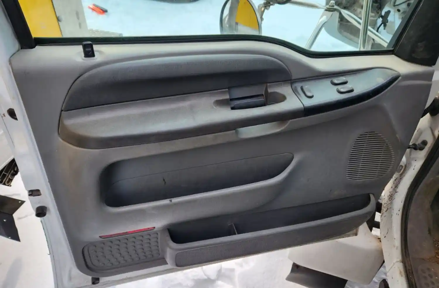 (Used) 2007 Ford F-650, INTERIOR DOOR PANEL- Side: Driver Left Side, Color: Grey, Type: Power, Material: Plastic, Reference images for condition,