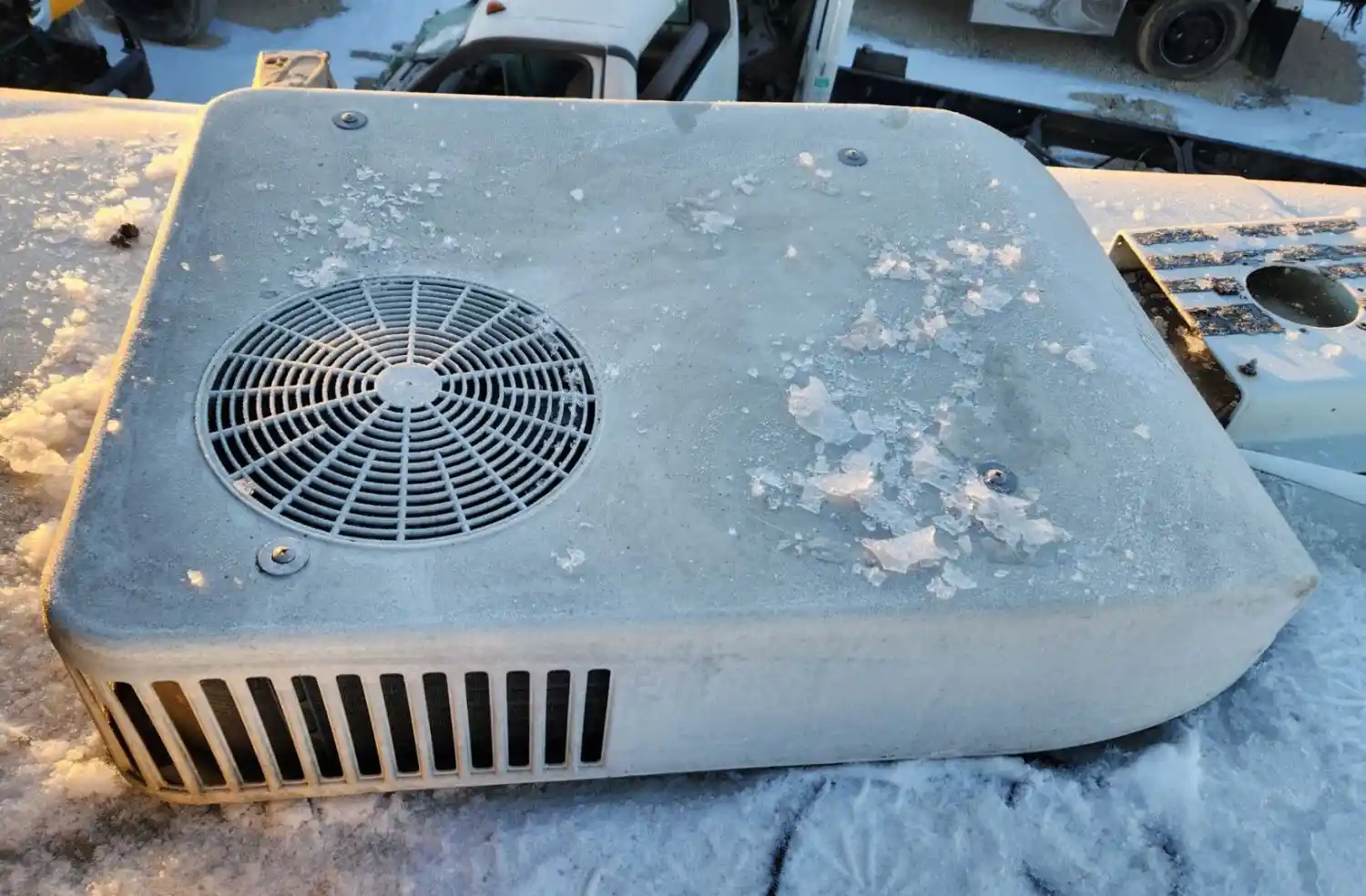 (Used) 2007 Freightliner Columbia 112, AIR CONDITIONER UPPER UNIT WHITE- Make: Coleman Mach, Location: Upper Cab, Material: Plastic, Reference images for condition,