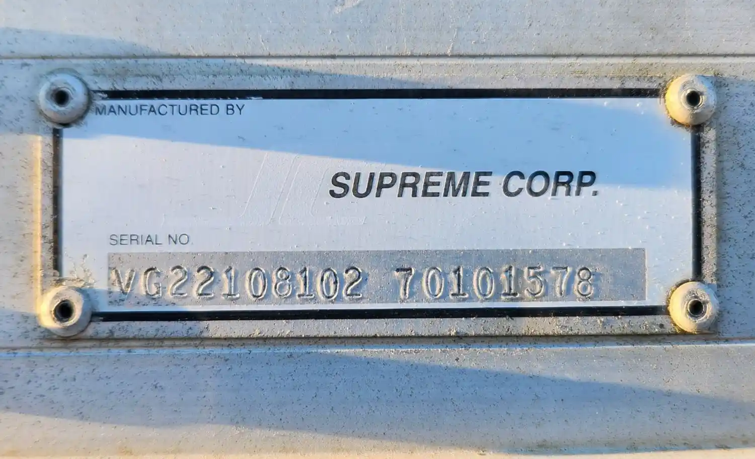 (Used) 2007 Freightliner Columbia 112, BOX BODY- Serial Number: VG22108102, Make: Supreme Corporation, Model: 70101578, Color: White, Material: Aluminum, Inside Dimensions: L=7.10FT, H=8.9FT, Entry Dimensions: L=7.9FT, H=8.4FT, Outside Dimensions: L=8.6FT, H=9.7FT, Length: 22.5FT, Reference images for condition,