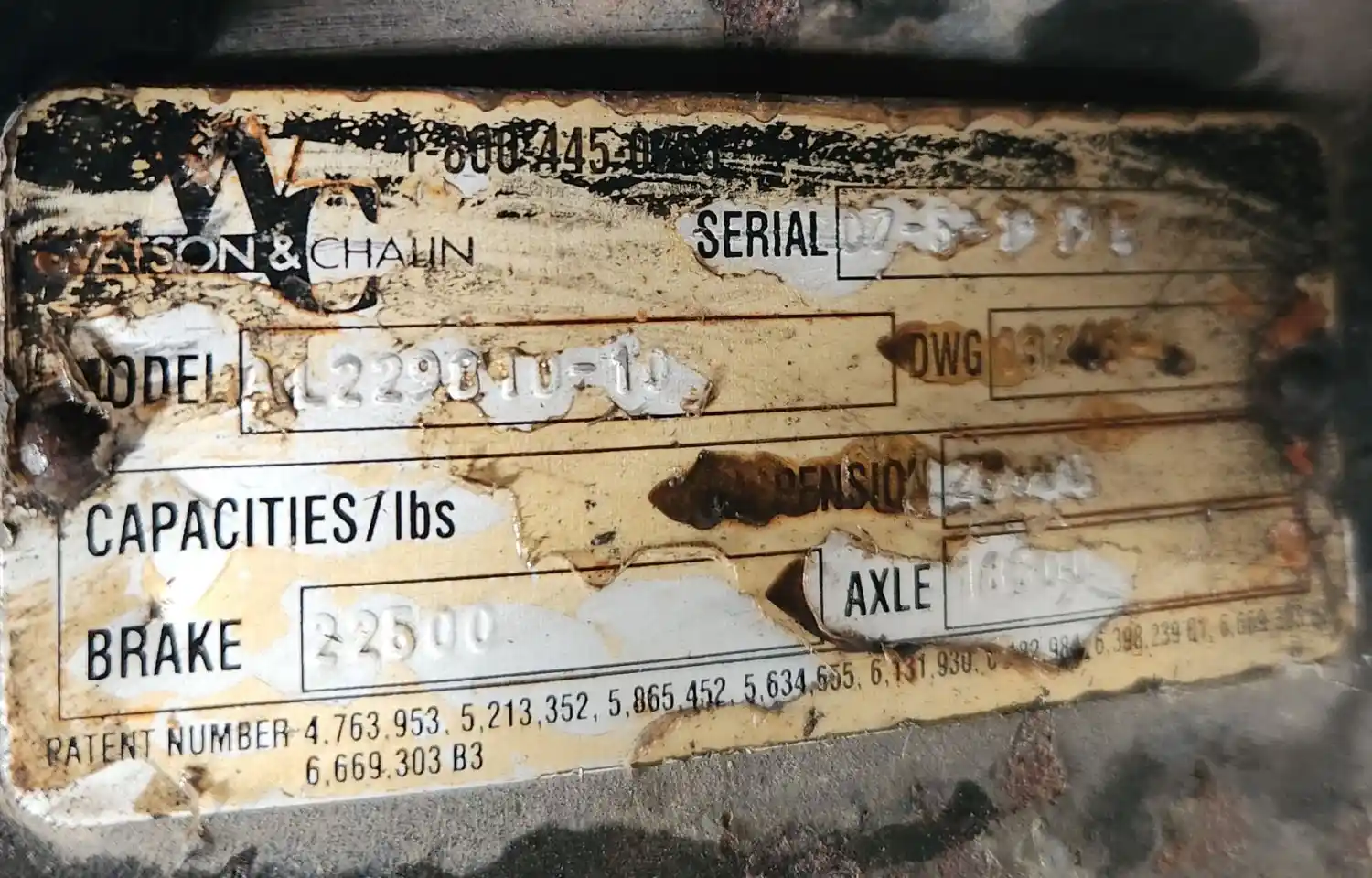 (Used) 2007 Freightliner Columbia 112, TAG AXLE- Serial Number: 07-5-1-191, Make: Watson-Chalin, Model: AL229810-10, Capacity: 18,500 Lbs, Hub Bolts: 10, Brake Type: Drum, Suspension: Air Suspension,