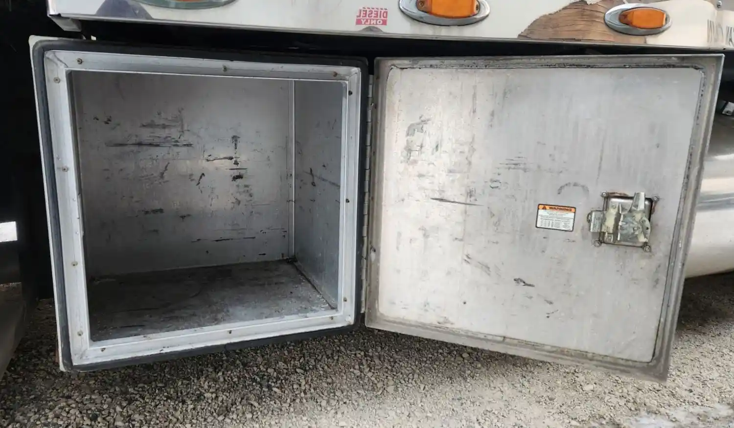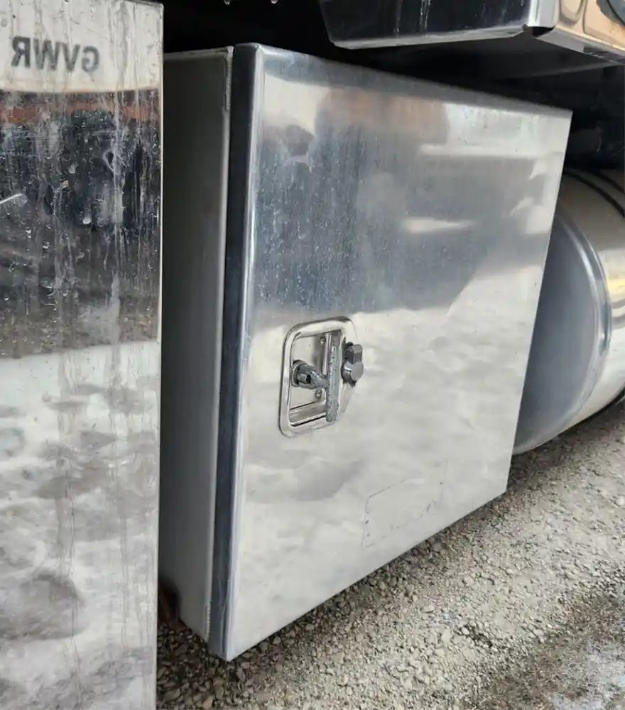 (Used) 2007 Freightliner Columbia 112, TOOL BOX- Side: Passenger Right Side, Color: Silver, Material: Aluminum, Dimensions: L=24", H=24", W=25", Reference images for condition,