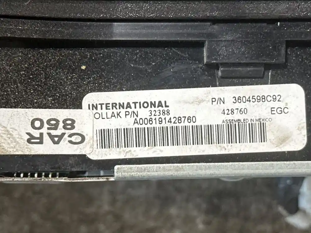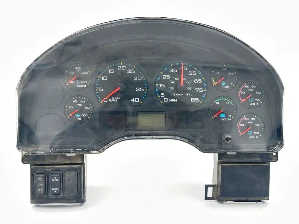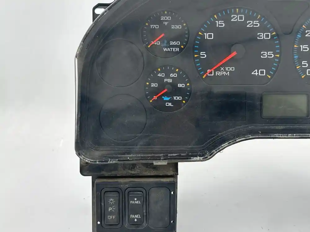 (Used) 2007 International 4400, INSTRUMENT CLUSTER- Part number: A006191428760, Gauges: Water Temperature, Engine Oil Pressure, RPM, MPH, Battery Volts, Fuel Level, Brake Air Pressure (1), Brake Air Pressure (2), Material: Plastic, Reference images for condition. ,