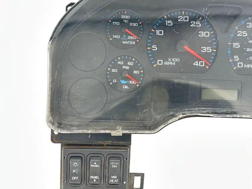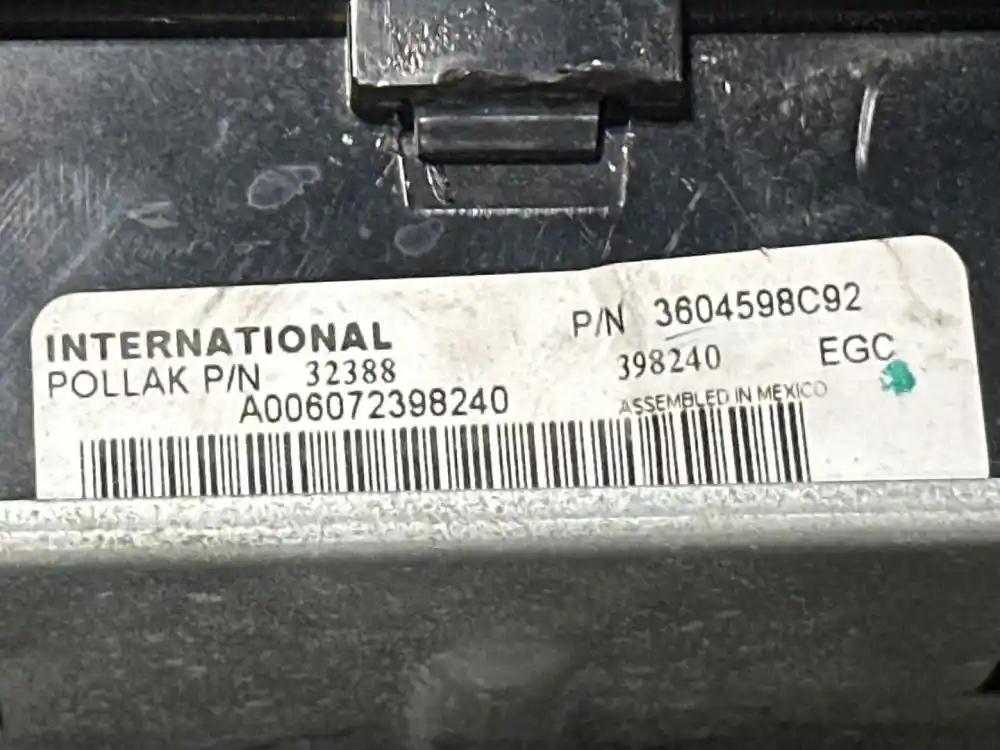 (Used) 2007 International 8600, INSTRUMENT CLUSTER- Part Number: 3604598C92, Gauges: Water Temp, Oil Pressure, RPM, MPH, Battery Volts, Fuel Level, Brake Air Pressure (1), Brake Air Pressure (2), Switches: Light P OFF, Panel, ON Mir HEAT, Reference images for condition. ,