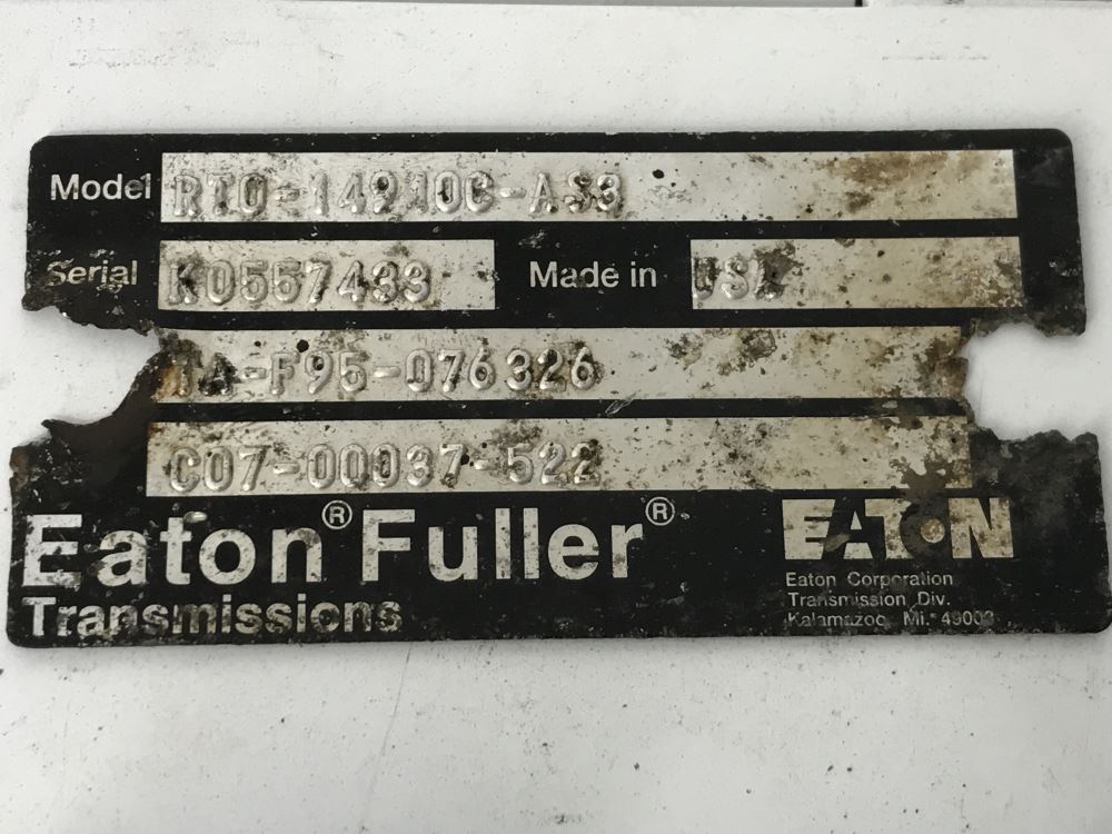 (USED) 2007AT EATON/FULLER TRANSMISSION ASSEMBLY- Serial #K0557433 P/N # TA-F95-076326 Engine: MERCEDES MBE4000 ( CRG HEAVY TRUCK PARTS )