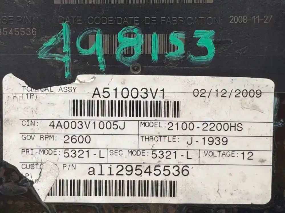(Used) 2008 Allison 2100-2200HS (AT), TRANSMISSION ECM- Part Number: 29545536, Serial Number: BK5536N183300081, 12 Volts A51003V1, CIN: 4A003V1005J, GOV RPM: 2600, THROTTLE: J--1939, PRI MODE: 5321- L, SEC MODE: 5321- L, E11, 032849, 10R022849, Supplier Number: ATA5101, Plug Pins: 80 Pins Plug Rectangular, Reference images for condition. ,