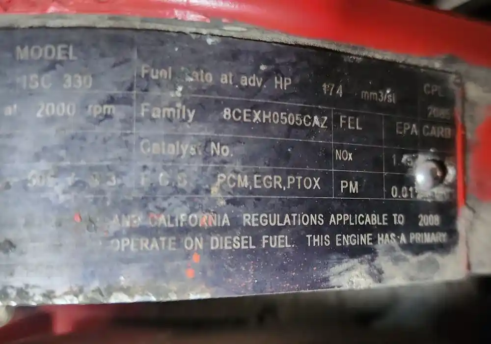 (Used) 2008 Cummins ISC 330, ENGINE ASSEMBLY- Family Number: 8CEXH0505CAZ, Displacement: 8.3L, Horsepower: 330, Ar.No./CPL: 2085, Serial Number: 46914286, Part Number: 1774664, E.C.S: PCM, EGR, PTOX, Mileage: 112852,