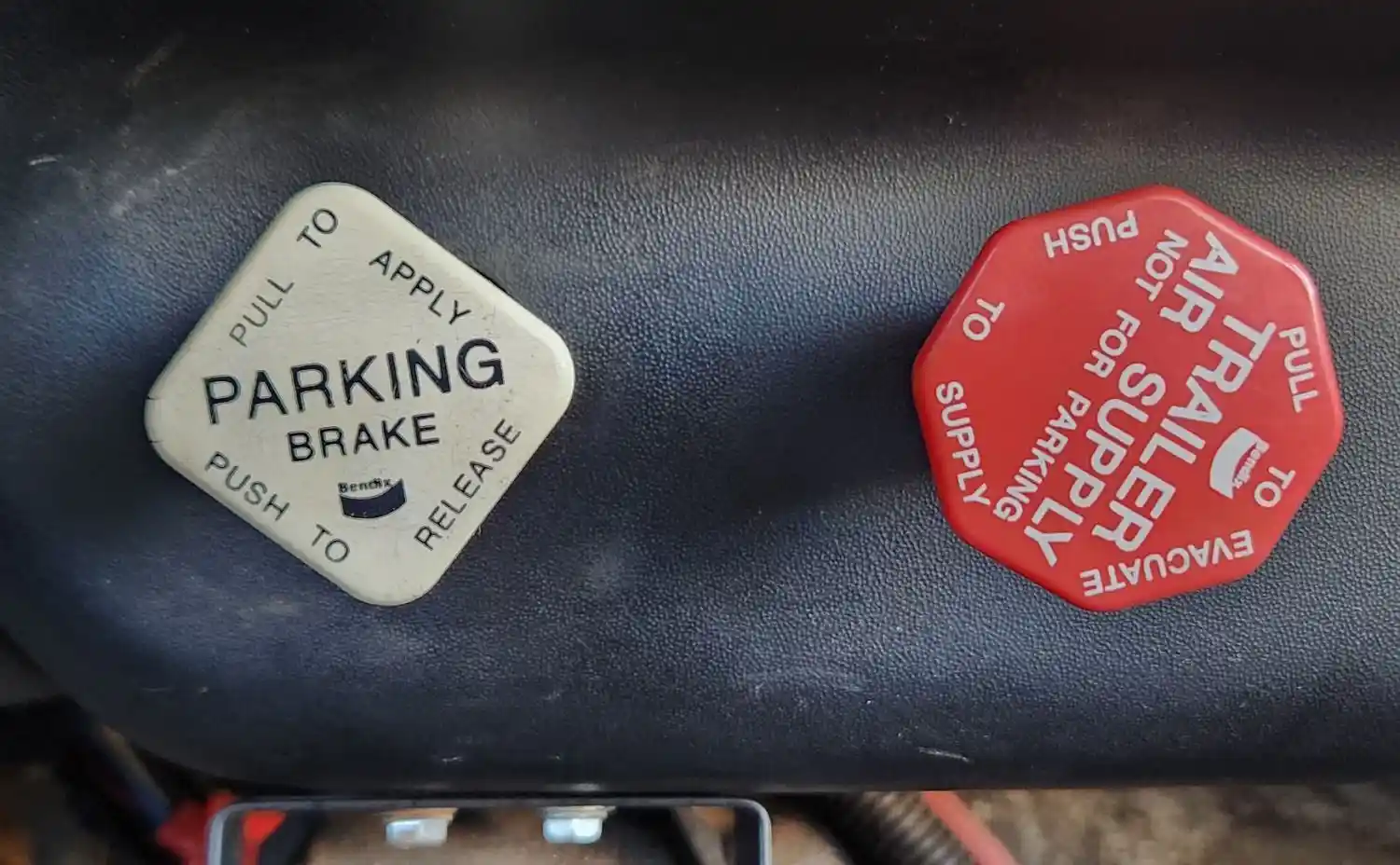 (Used) 2008 Ford F-750, MISCELLANEOUS DASH SWITCHES- Controls: Parking Brake, Trailer Air Supply, Material: Plastic, Reference images for condition,