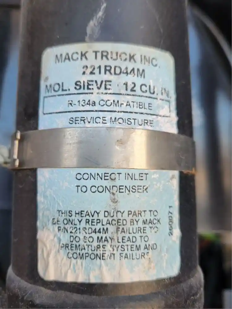(Used) 2008 Mack GU813, A/C DRYER-RECEIVER- Part Number: 221RD44M, Side: Driver Left Side, Material: Aluminum, Color: Black, Reference images for condition,