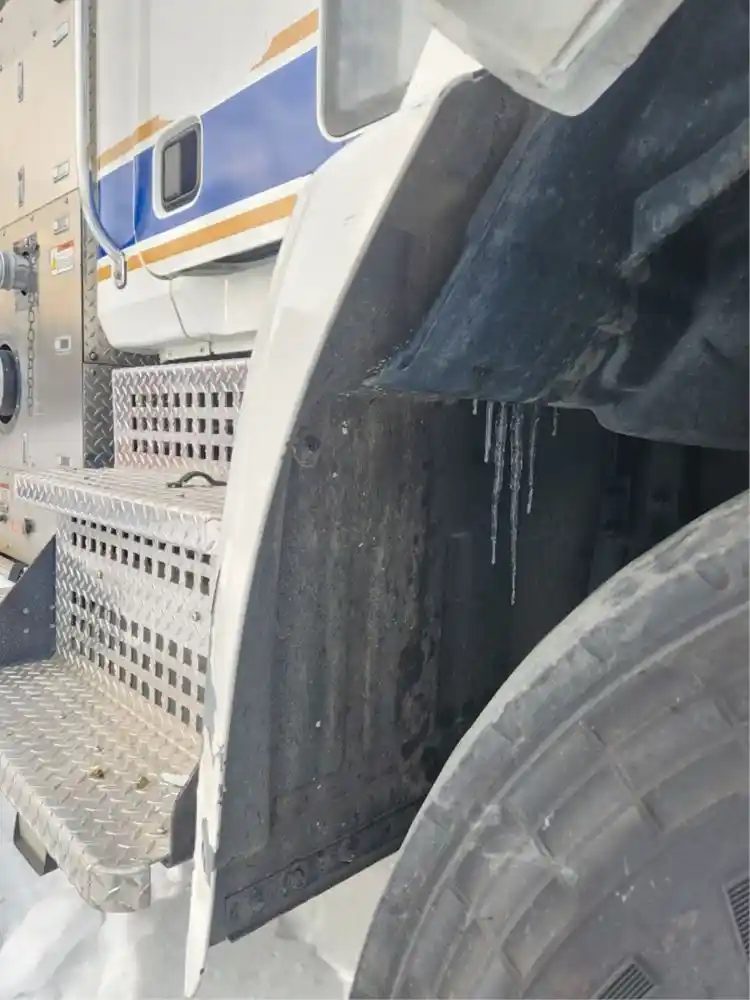 (Used) 2008 Mack GU813, FENDER EXTENSION- Side: Passenger Right Side, Color: White, Material: Plastic, The paint is peeling!! Reference images for condition,