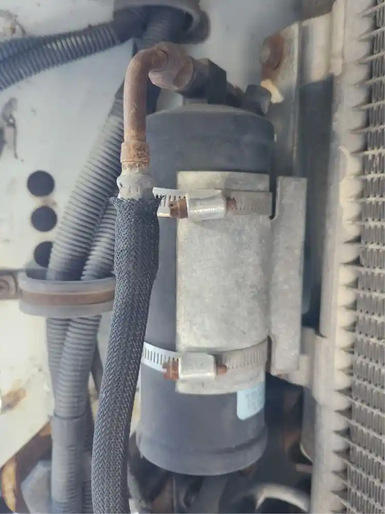 (Used) 2008 Mack MRU613, A/C DRYER-RECEIVER- Part Number: 82781559, Side: Driver Left Side, Material: Steel, Color: Black, Reference images for condition,
