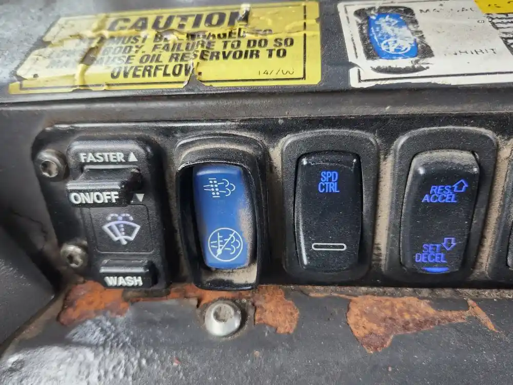 (Used) 2008 Mack MRU613, MISCELLANEOUS DASH SWITCHES- Controls: Wiper Washer, Particulant Filter Regeneration, Spd-Ctrl, Set Accel-Set Decel, Control Mirror L-R, Diff Inter Axle Lock, Cam 1 2 3, Material: Plastic, Reference images for condition,