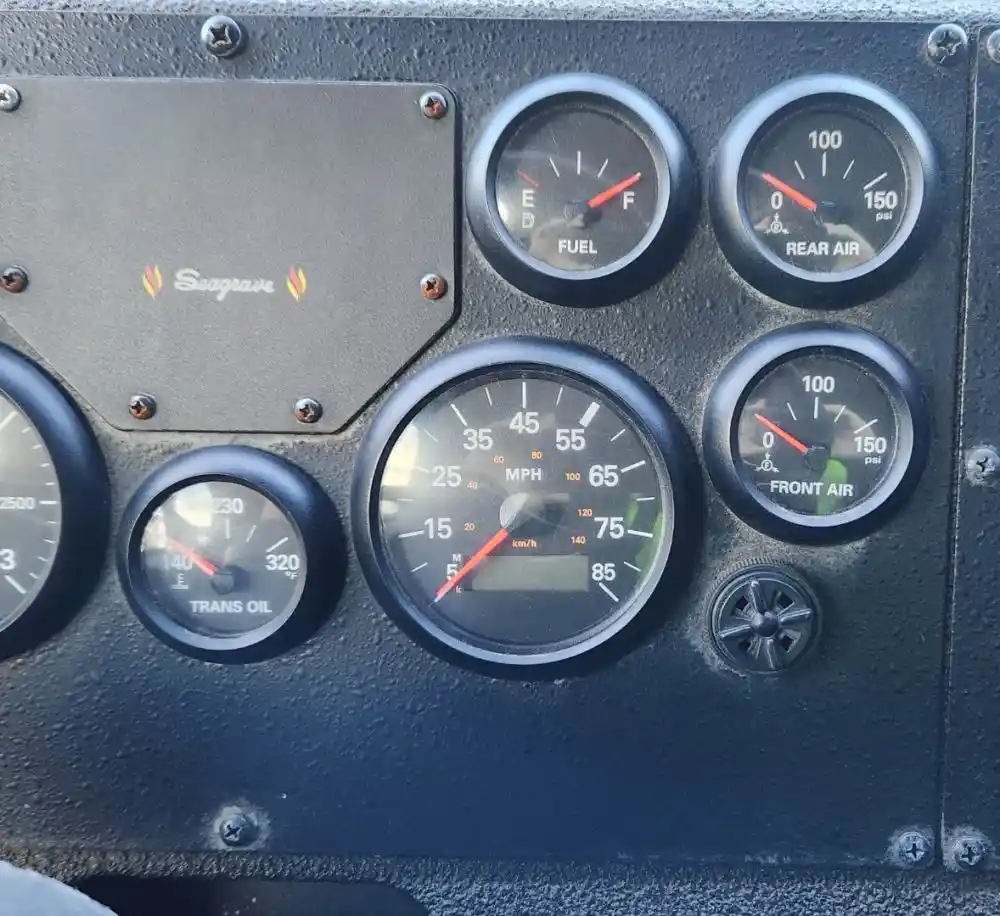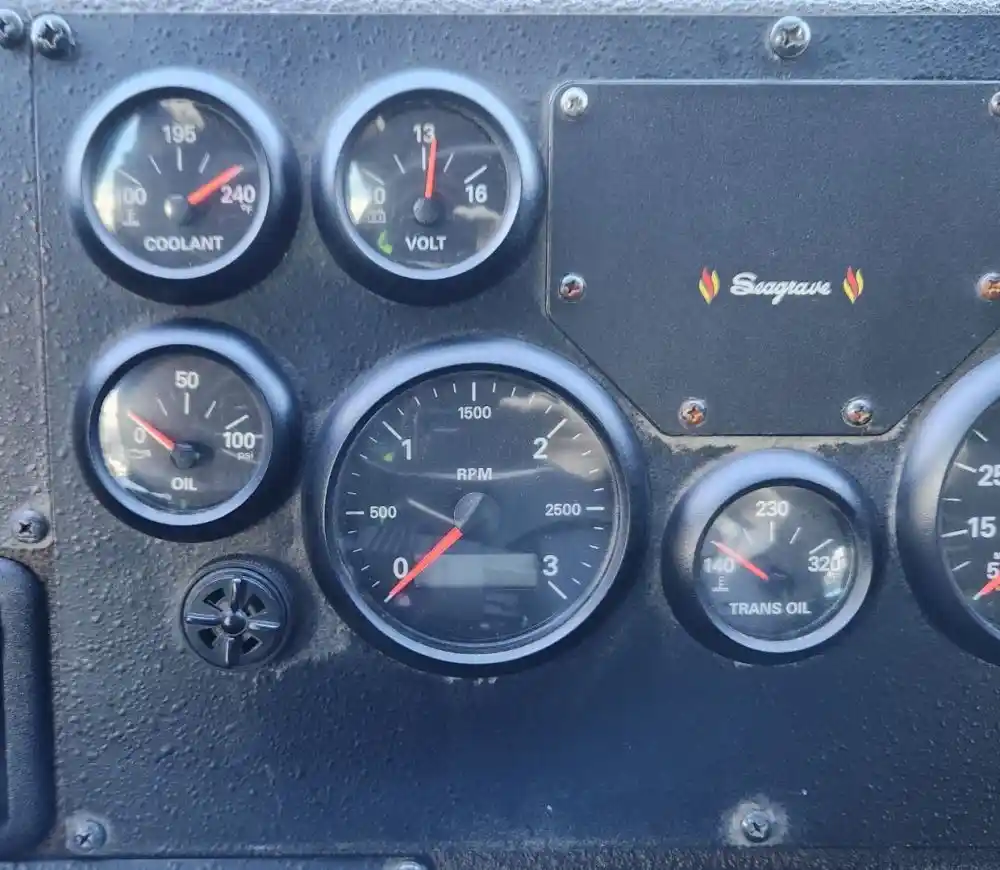 (Used) 2008 Seagrave Pumpers, INSTRUMENT CLUSTER- Gauges: Coolant Temperature, Battery Volts, Engine Oil Pressure, RPM, Transmission Oil Temperature, MPH, Fuel Level, Brake Air Pressure (F), Brake Air Pressure (R), Material: Aluminum with Plastic,