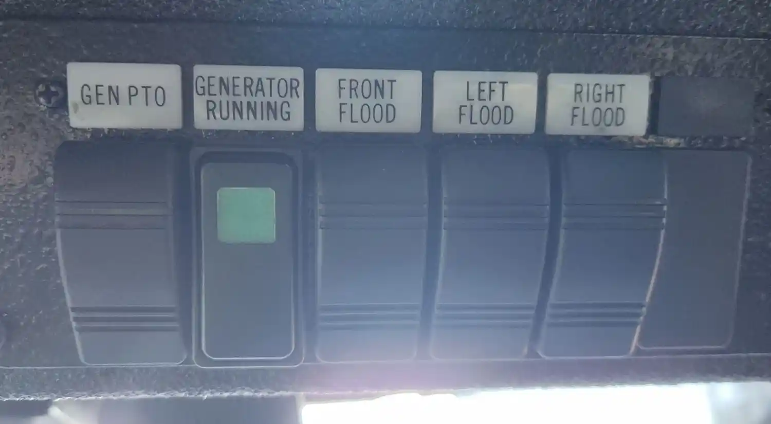 (Used) 2008 Seagrave Pumpers, MISCELLANEOUS DASH SWITCHES- Controls: GEN PTO, Generator Running, Front Flood, Left Flood, Right Flood, Material: Aluminum with Plastic,