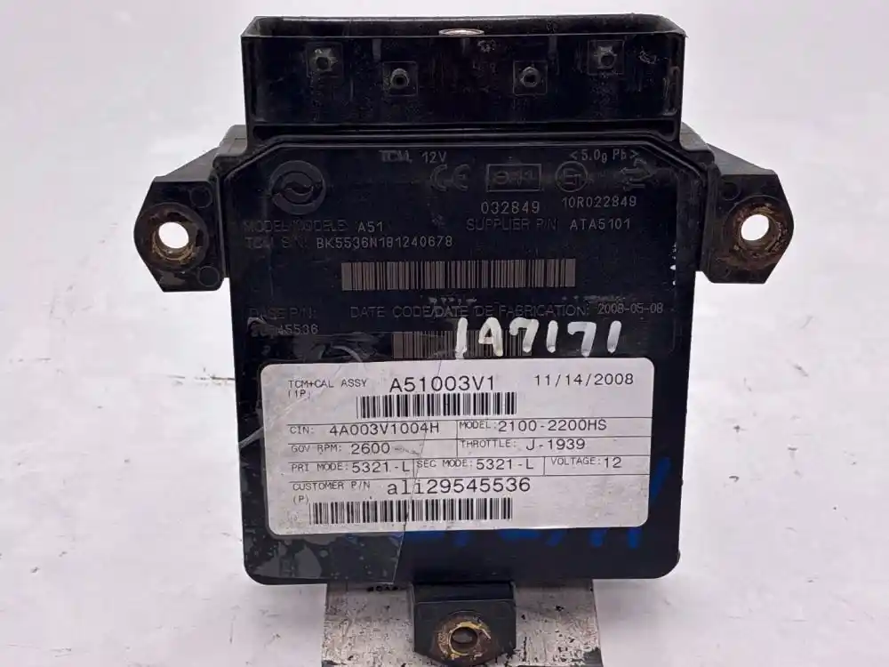 (Used) 2009 Allison 2100-2000HS , TRANSMISSION ECM- Part Number: 29545536, Serial Number: BK5536N181240678, A51003V1, CIN: 4A003V1004H, GOV RPM: 2600, THROTTLE: J-1939, PRI MODE: 5321-L, SEC MODE: 5321-L, Customer P/N: ALI29545536, 12V, E11, 032849, 10R022849, Supplier Number: ATA5101, MODEL: A51, Plug Pins: 80 Pins Plug Rectangular, Reference images for condition. ,