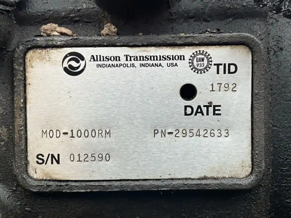 (Used) 2009 Allison (AT), TRANSMISSION ASSEMBLY- Model: 1000RM, Serial Number: 012590, Part Number: 29542633, Engine: Cummins ISB, Reference images for condition. ,